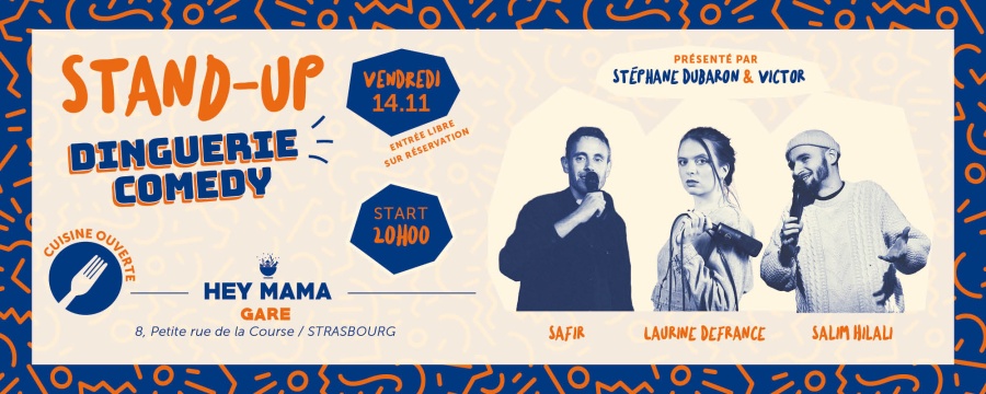 Plateau de stand-up 3x20 minutes avec Laurine Defrance, Safir et Salim Hilali MC/Dingueries: Stéphane Dubaron et Victor Entrée libre sur réservation, sortie au chapeau in Details